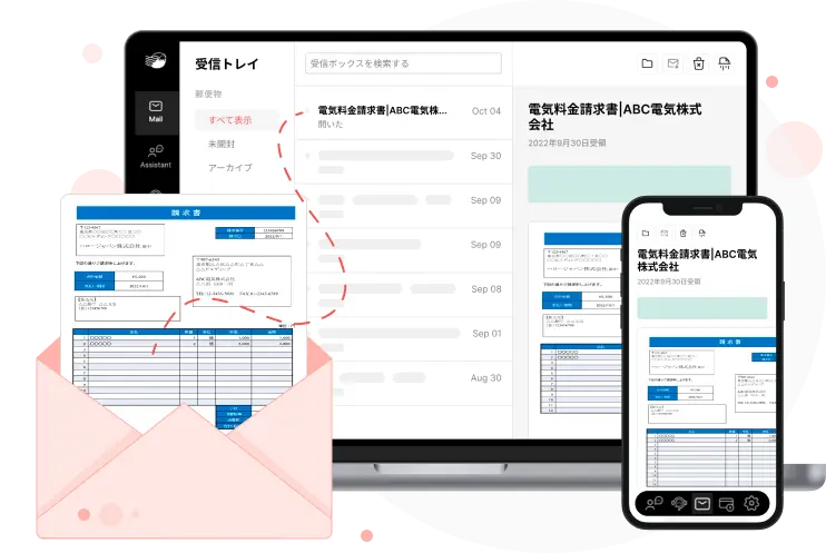 オフィスにいても、自宅にいても、海外にいても、会社の郵便物の受け取り・管理が可能です。郵便物の管理から、チームメイトへの共有、支払い代行までMailMateで全て解決できます。