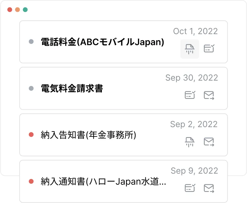 公共料金などの請求書の支払いをMailMateが代行いたします。
